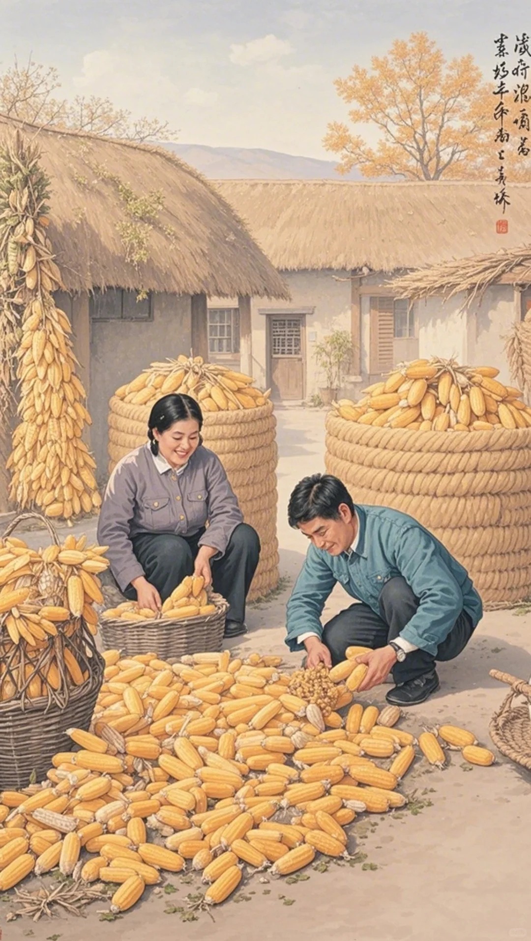 Anh chàng này một ngày bẻ được ba mẫu ruộng, ngô chất thành đống chở về nhà.